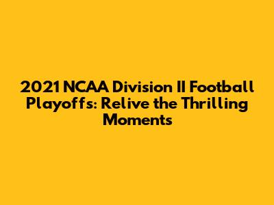 The 2021 NCAA DII Football Playoffs were more than just a series of games; they were a celebration of the sport, the athletes, and the passion of college football. The tournament produced countless memorable moments, showcased incredible talent, and left a lasting legacy. From the thrilling upsets to the nail-biting finishes, the 2021 playoffs had it all. The teams and players who competed in the tournament demonstrated the values of hard work, dedication, and teamwork, serving as an inspiration to aspiring athletes and fans alike.