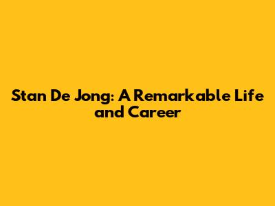 Stan De Jong: A Look Into His Life And Career
